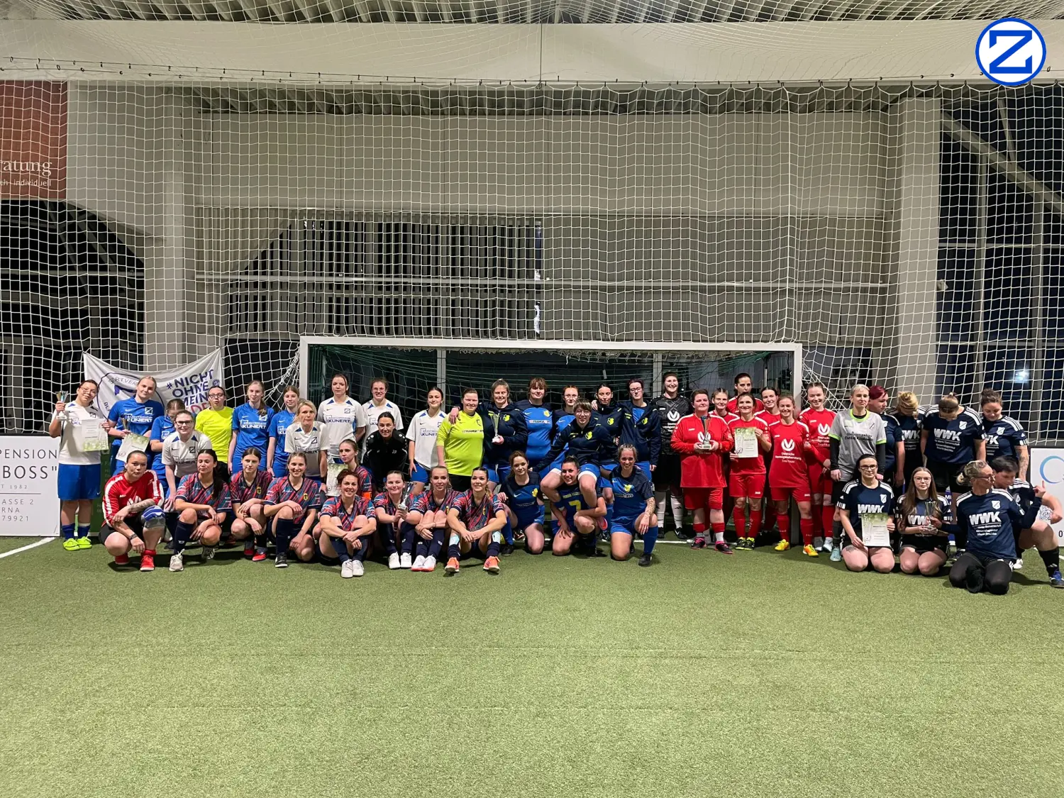 Am Nikolaustag starteten 40 Bambinis ins Turnier. Im angesagten Kinderfußballformat 3 x 3 auf vier Minitore wurde jedes Tor frenetisch von den Fans gefeiert und die hatten richtig zu tun. Bilanz nach zwei Stunden: 124 Tore, Medaillen für alle und glückliche Kinderaugen. Die fantastische Stimmung blieb im folgenden Turnier der E/F-Mädels erhalten. Auch hier zeigten unsere Mädchen was sie schon so alles mit dem Ball können auf zwei Feldern im Kinderfußball 3 x 3.